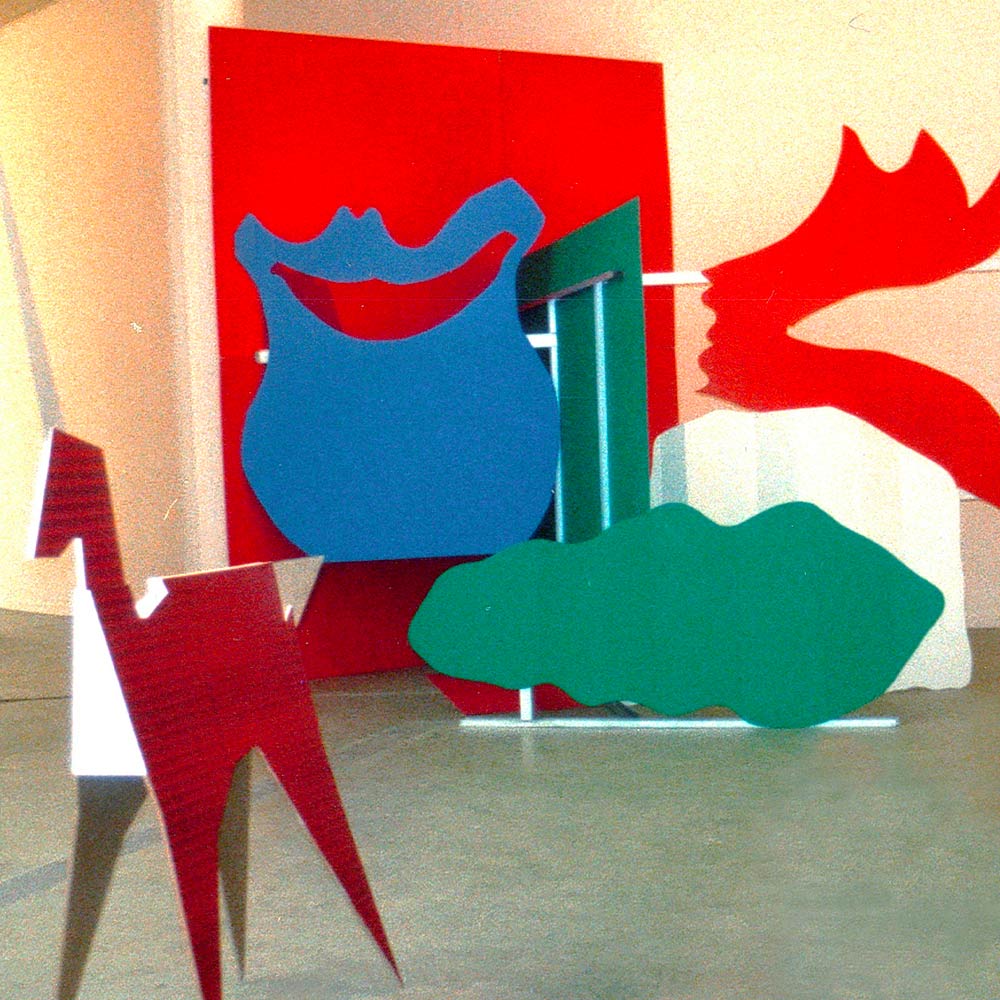 La projection du récit dans l’objet donne alors un rebond à l’intrigue, le verre de lait dans “Soupçons“ d’Hitshcock, il devient la métaphore de la trahison. De ces repères cinématographiques sont nés une série de dessins, storyboards ressaisis de l’image cinématographique vers un travail de sculpture. Des maquettes ont été réalisées à l’atelier puis agrandies dans l’espace de la galerie du TNB à Rennes. Cette mise en espace intégrait des dessins, des tickets fictifs de séances de cinéma ainsi qu’un ensemble de sculptures éphémères et monumentales évoquant des films comme “Le mépris“, “Blade runner“, “Boccacce 70“, “Playtimes“, “Sweety“…