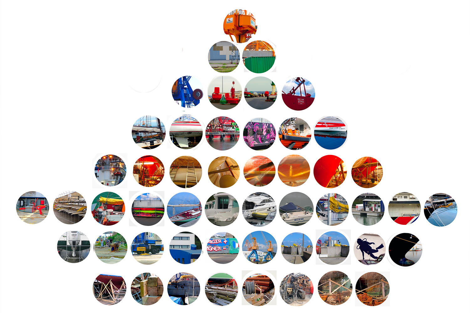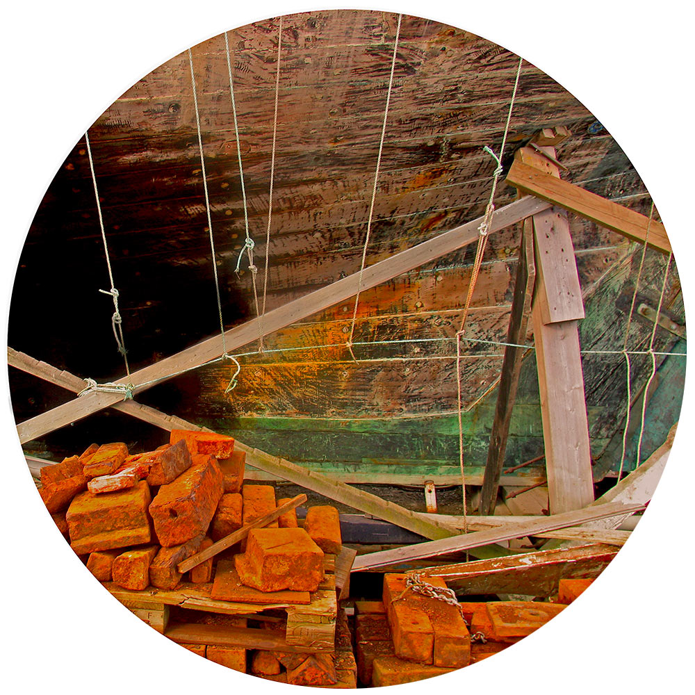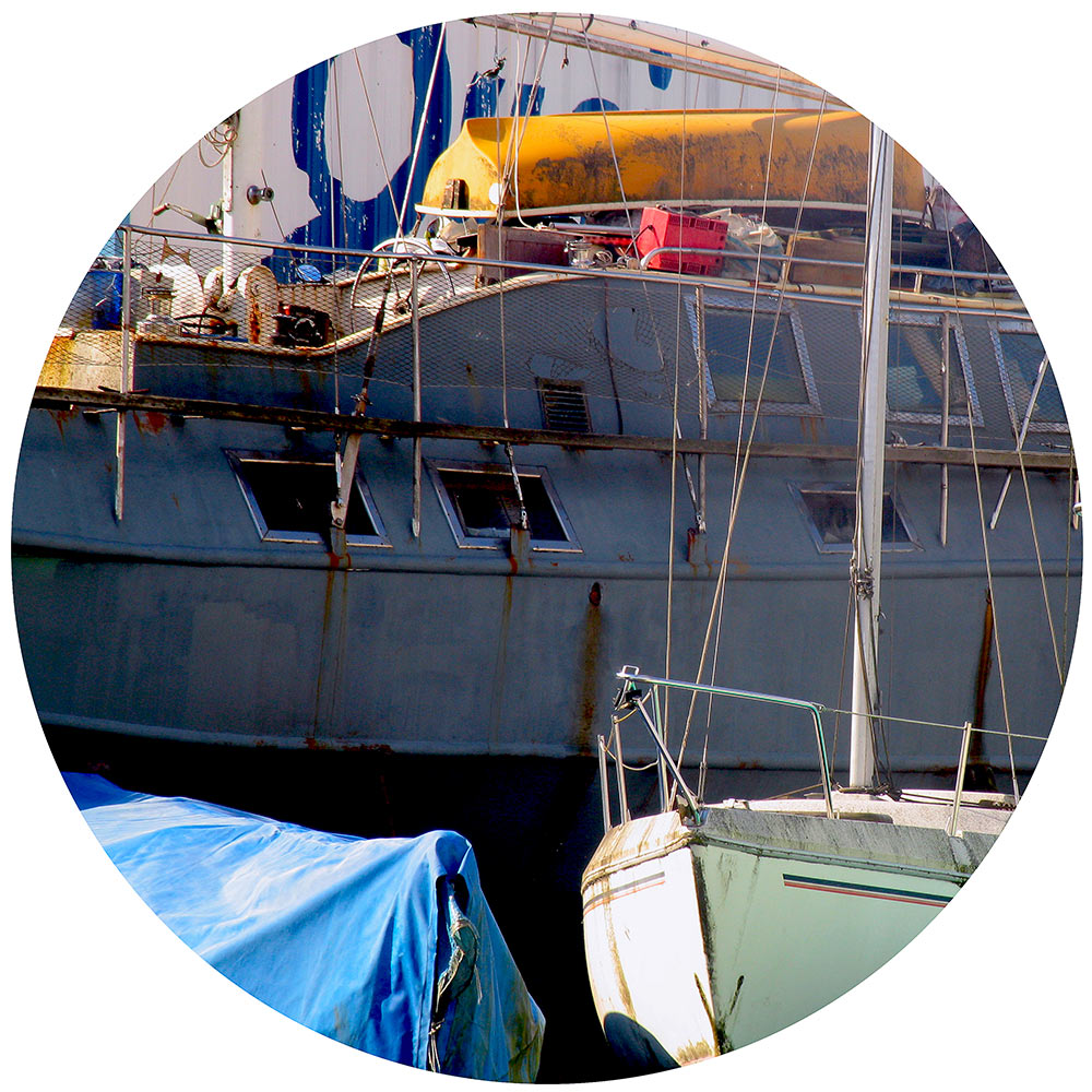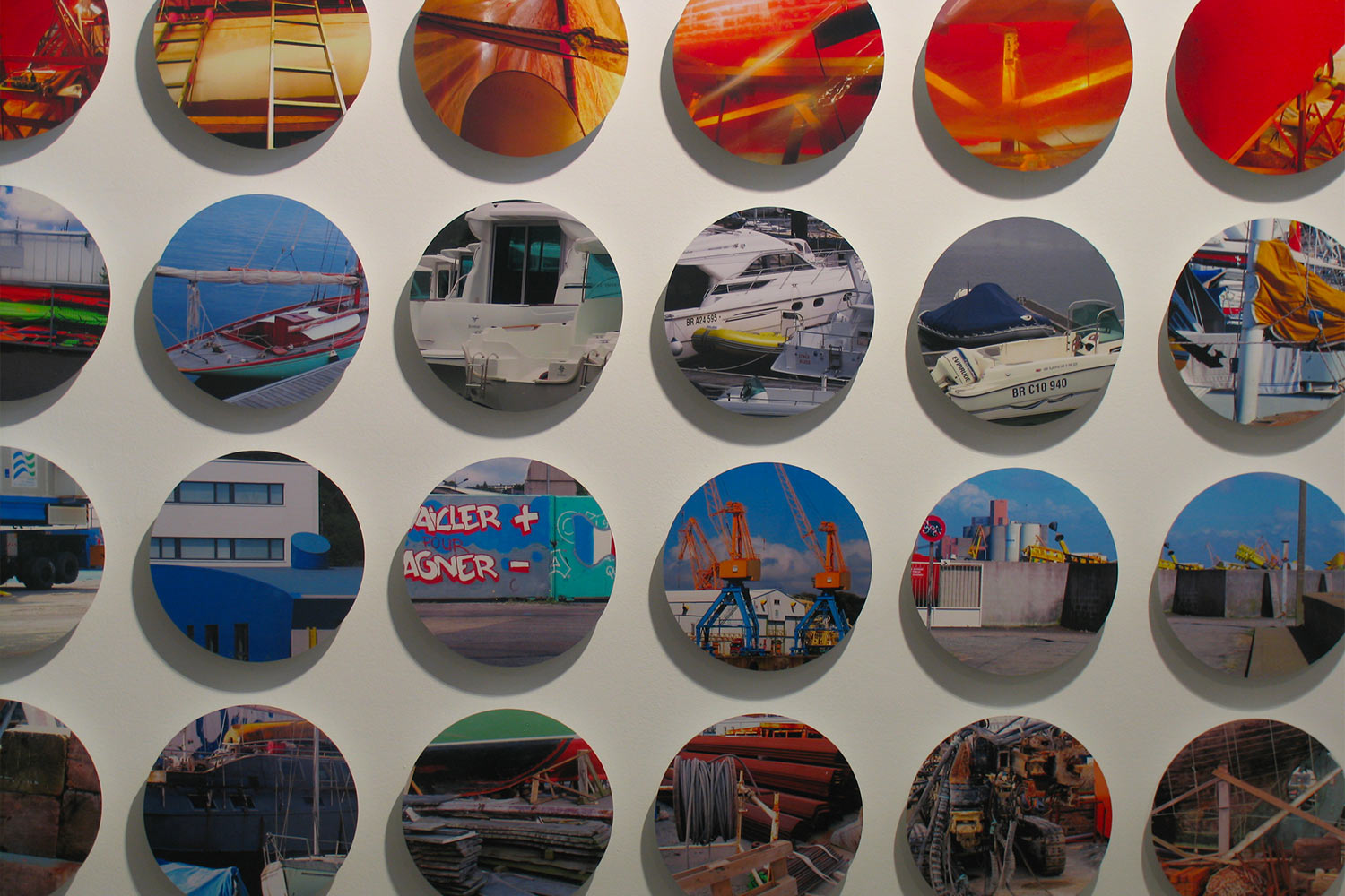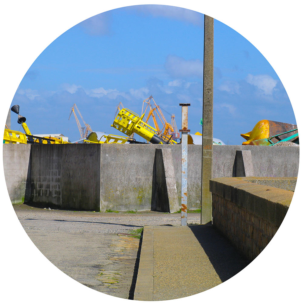 “ … Et que ce soit la photographie, la peinture, le dessin, ou la sculpture, chaque moyen d’expression est pour Hervé le Nost le lieu d’expérimentation de la réalité. L’oeuvre montre des cadrages effectués sur des formes peintes, des matériaux bruts, des machines rouillées ou flambantes neuves …“ “… 51 découpes de ce que le regard peut saisir d’une errance dans ce grand décor que représente le port de Brest. Cette errance déroule les plis et les replis de cet espace portuaire comme ceux d’une cartographie. “