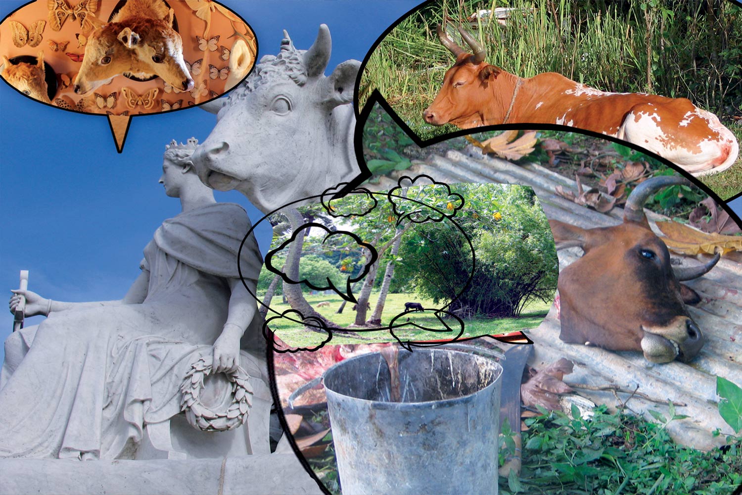 la produire ? Cela implique de sa part une réflexion concernant le style, son évitement, l’échelle, l’espace, la couleur, la technologie, une narration plastique qui vient nouer intensions et sources. La réflexion est mobile, elle trouve ses vecteurs par la statuaire, l’installation, le dessin, la photographie, la numérisation, la vidéo, la céramique, avec une nécessité de pertinence.