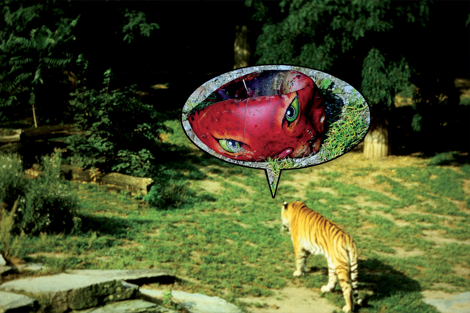 “ Pas étonnant qu’Hervé Le Nost fasse parler les images. Il en résulte un jeu de pensées, l’expérience d’un terrain de jeu constitué d’assemblages visuels : des rébus où les images photographiques remplacent les lettres et les mots.