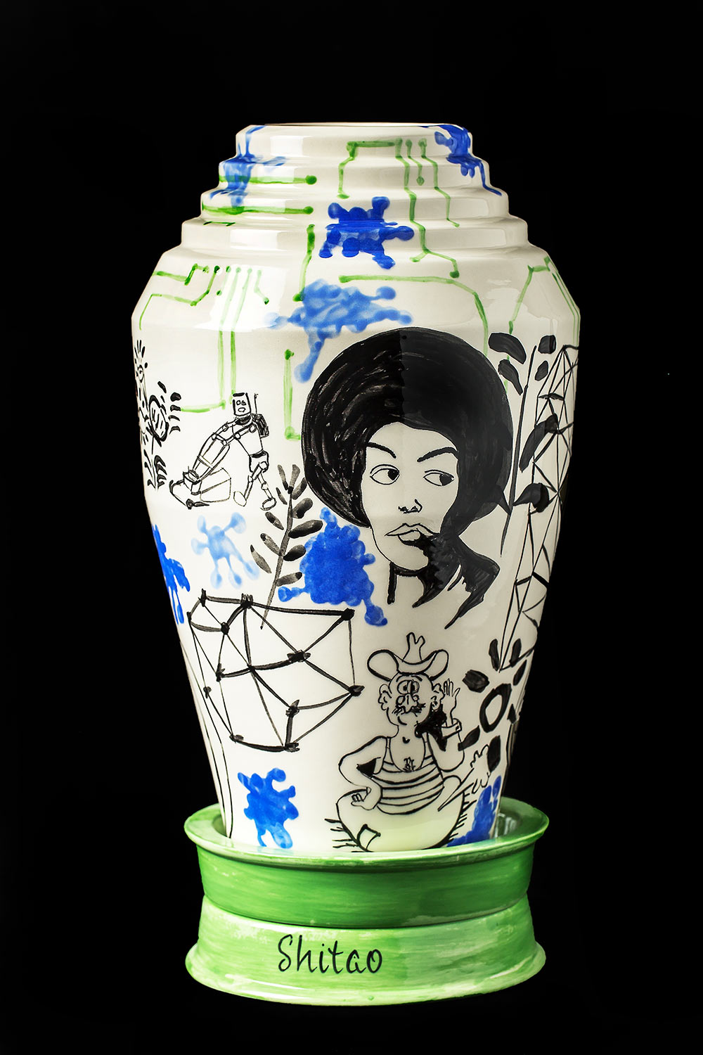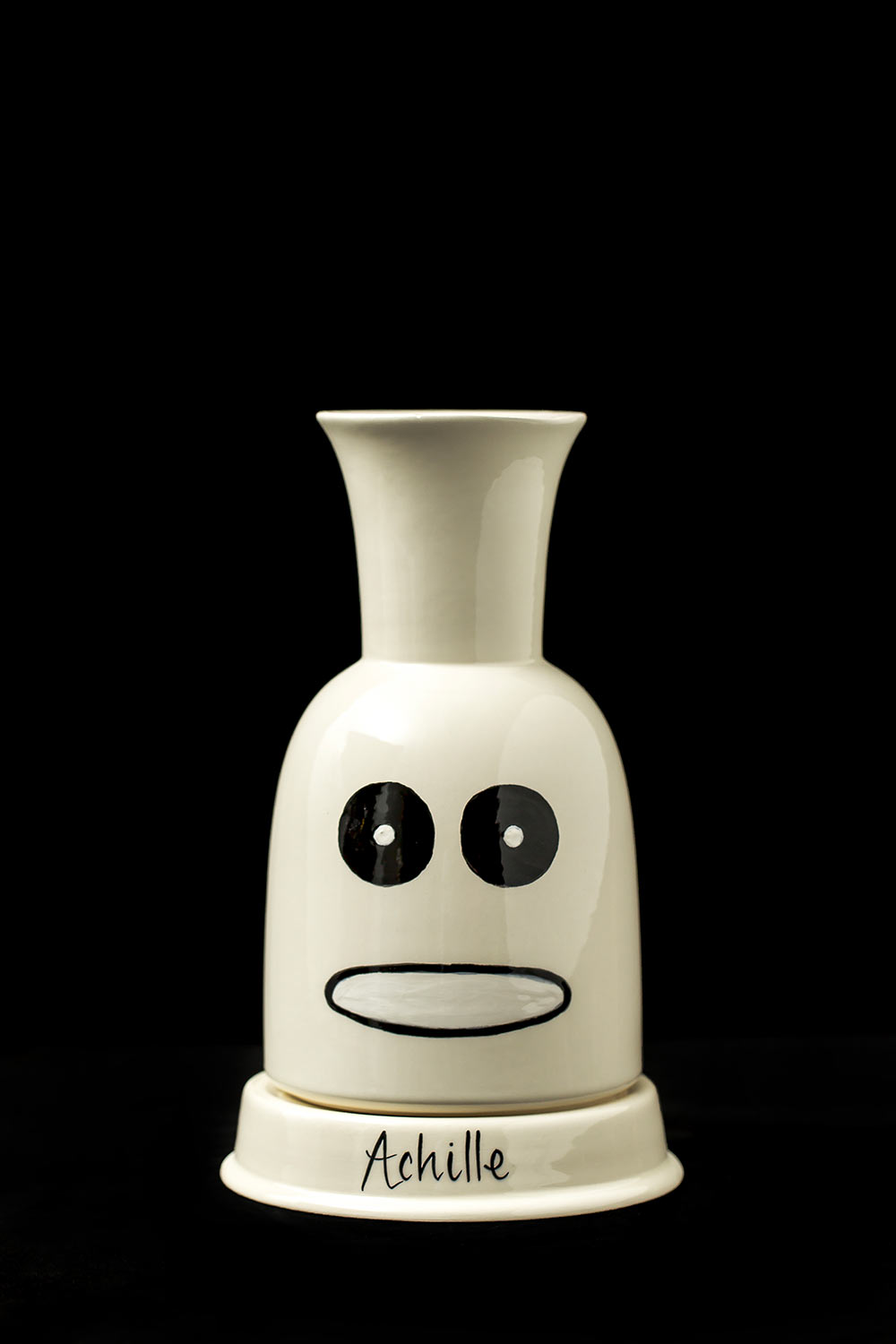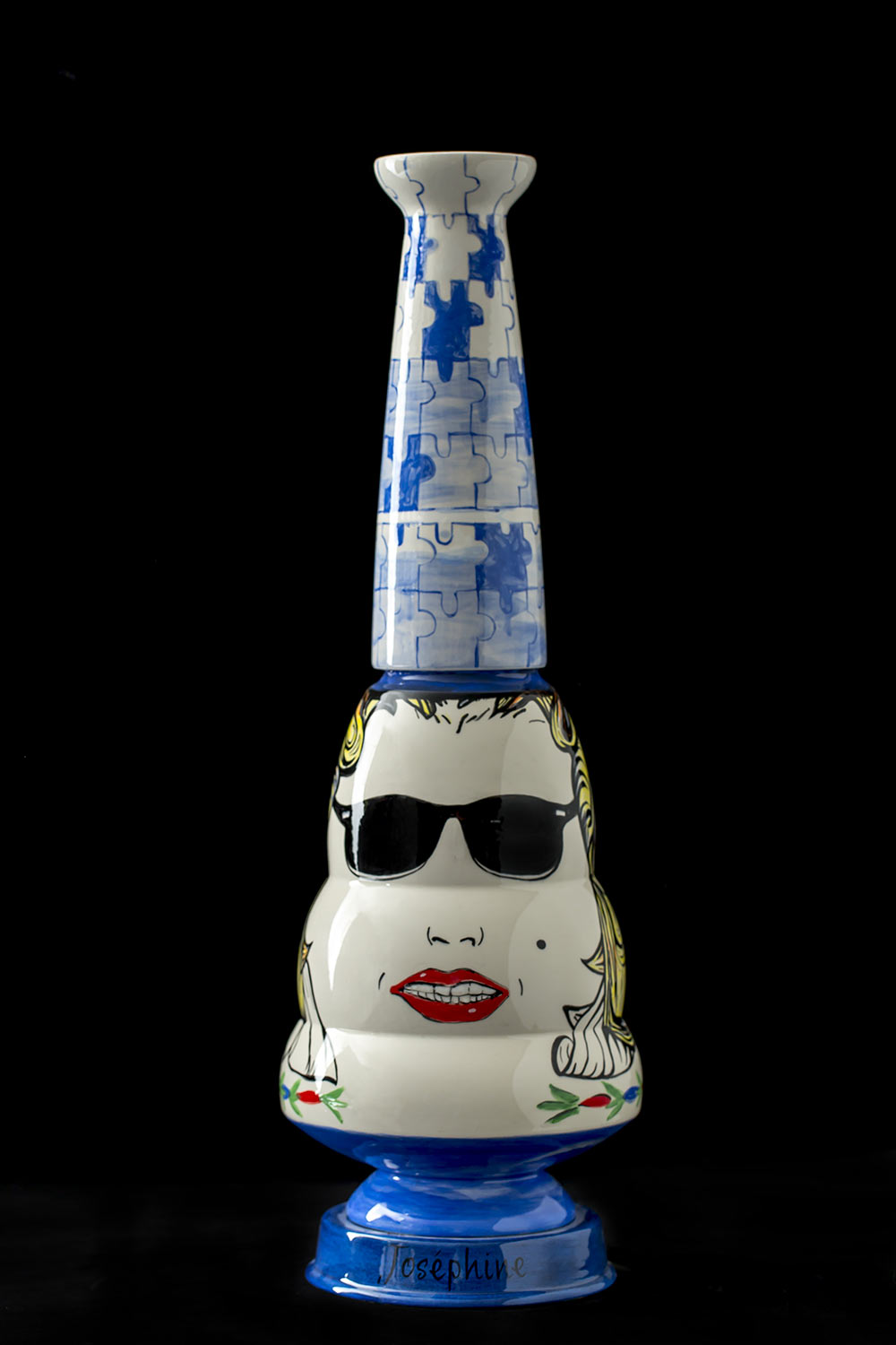 Résidence à la faïencerie Henriot-Quimper. Dessins et assemblages à partir de tirages de formes Art Décos Odetta des années 1920 – 1930 dont les moules sont toujours conservés. Chaque vase/ sculpture est une pièce unique figurant un portrait dont le prénom est inscrit à sa base à la manière de la tradition de la manufacture des bols à oreilles personnalisés. L’ensemble des pièces uniques constitue un trombinoscope de personnages appartenant à mon propre univers.