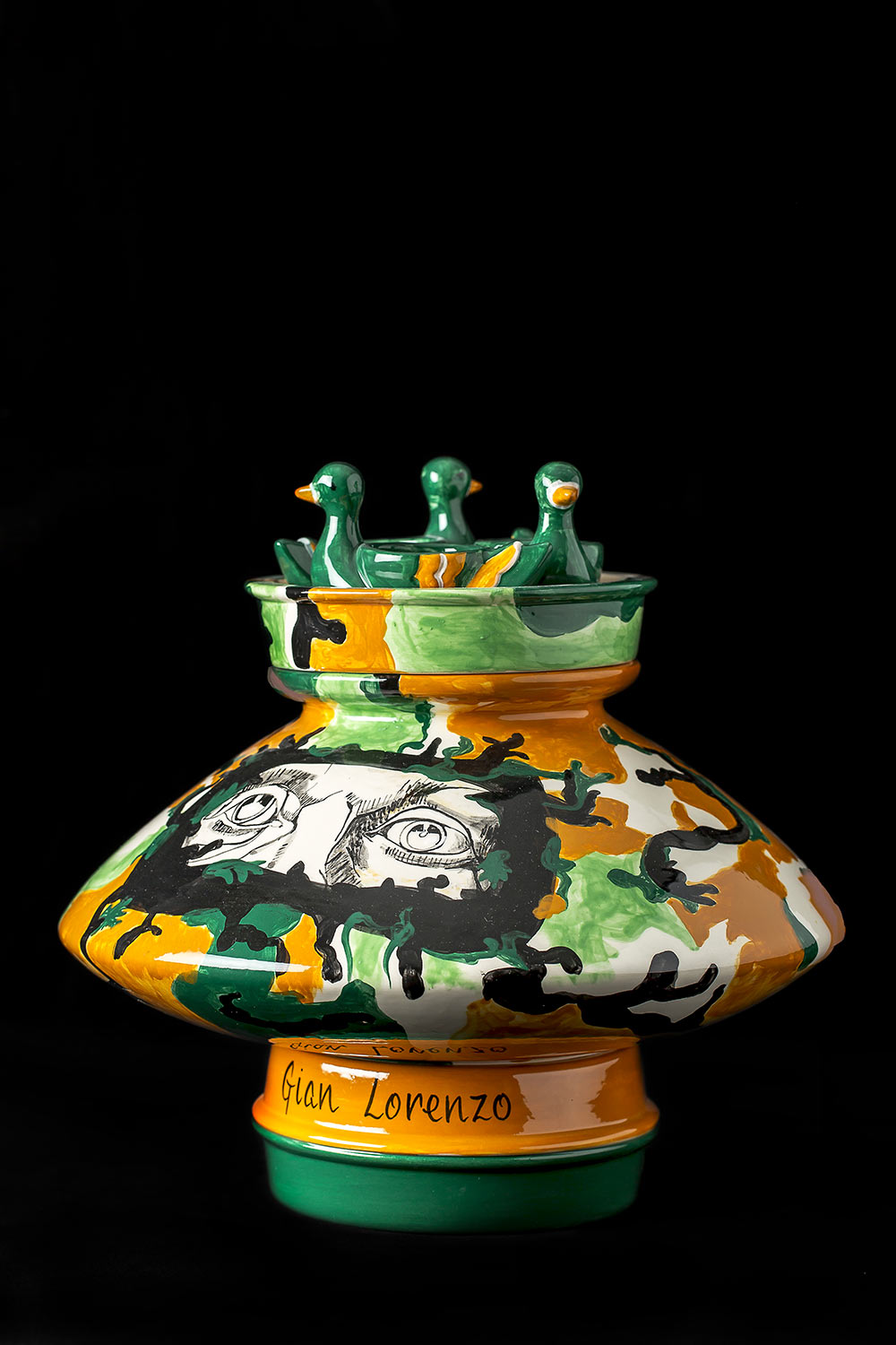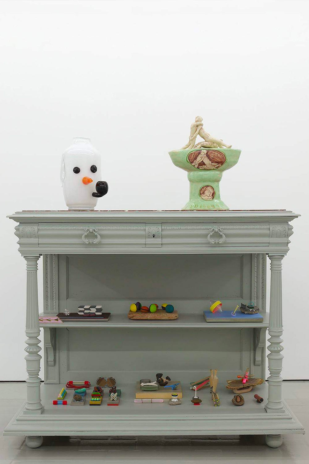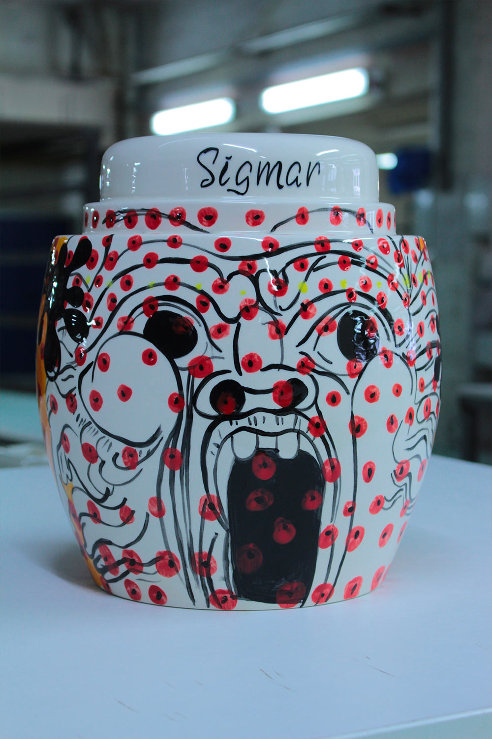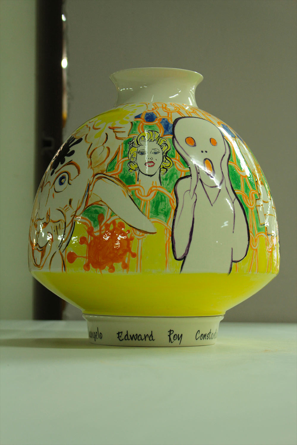Résidence à la faïencerie Henriot-Quimper. Dessins et assemblages à partir de tirages de formes Art Décos Odetta des années 1920 – 1930 dont les moules sont toujours conservés. Chaque vase/ sculpture est une pièce unique figurant un portrait dont le prénom est inscrit à sa base à la manière de la tradition de la manufacture des bols à oreilles personnalisés. L’ensemble des pièces uniques constitue un trombinoscope de personnages appartenant à mon propre univers.